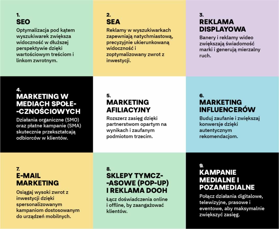 PrestaShop podkreśla, że największą skuteczność osiągają strategie łączące media tradycyjne z cyfrowymi. Działania terenowe, takie jak sampling, eventy czy partnerstwa, dodatkowo wzmacniają kontakt z konsumentem i pozwalają wyróżnić się na tle konkurencji.