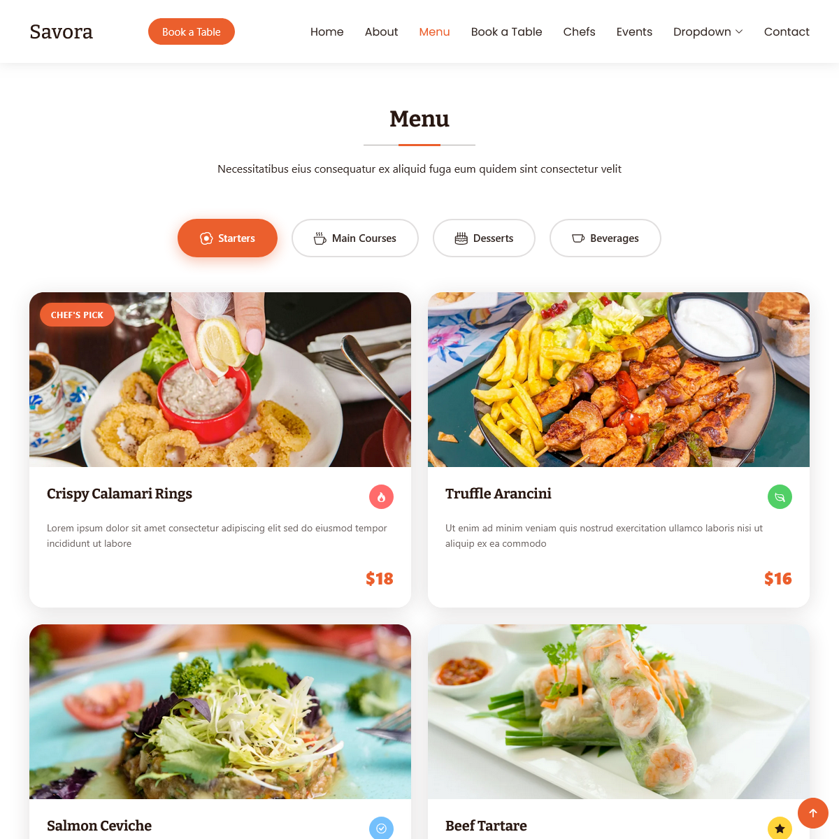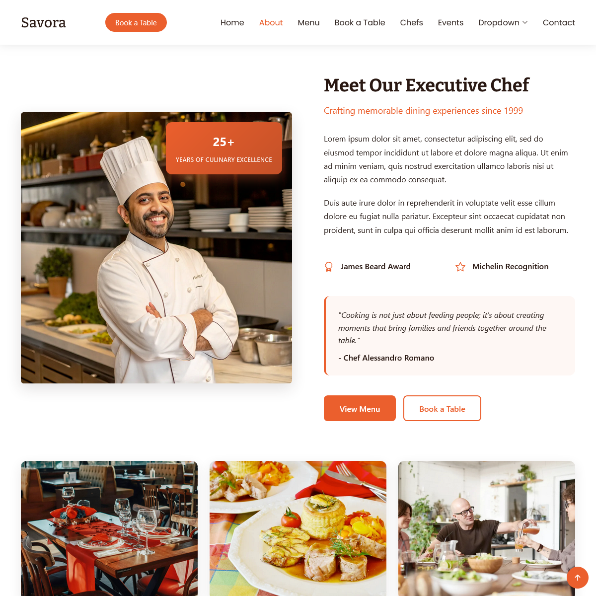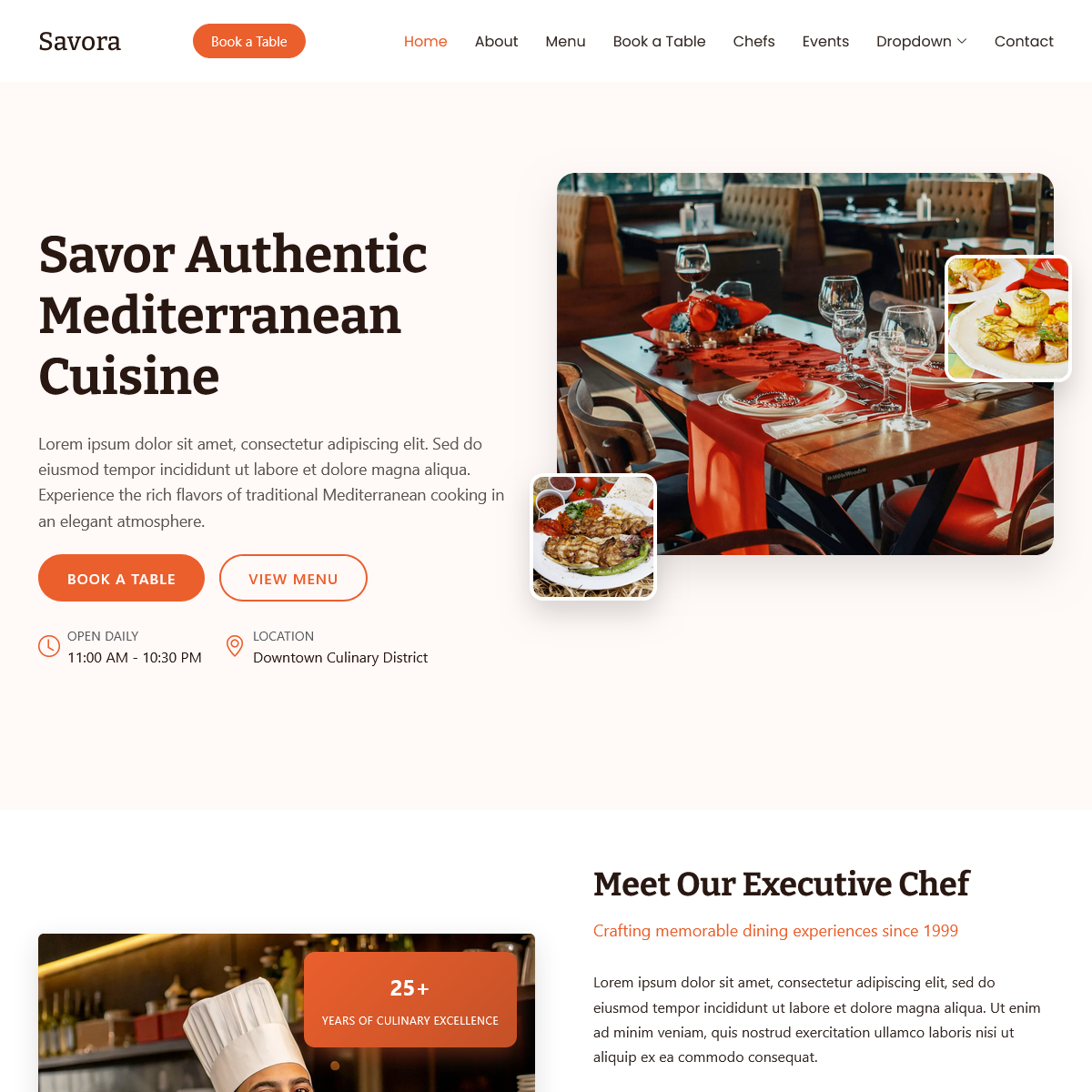 Strona główna — wyróżniające zdjęcia, slogan restauracji, CTA